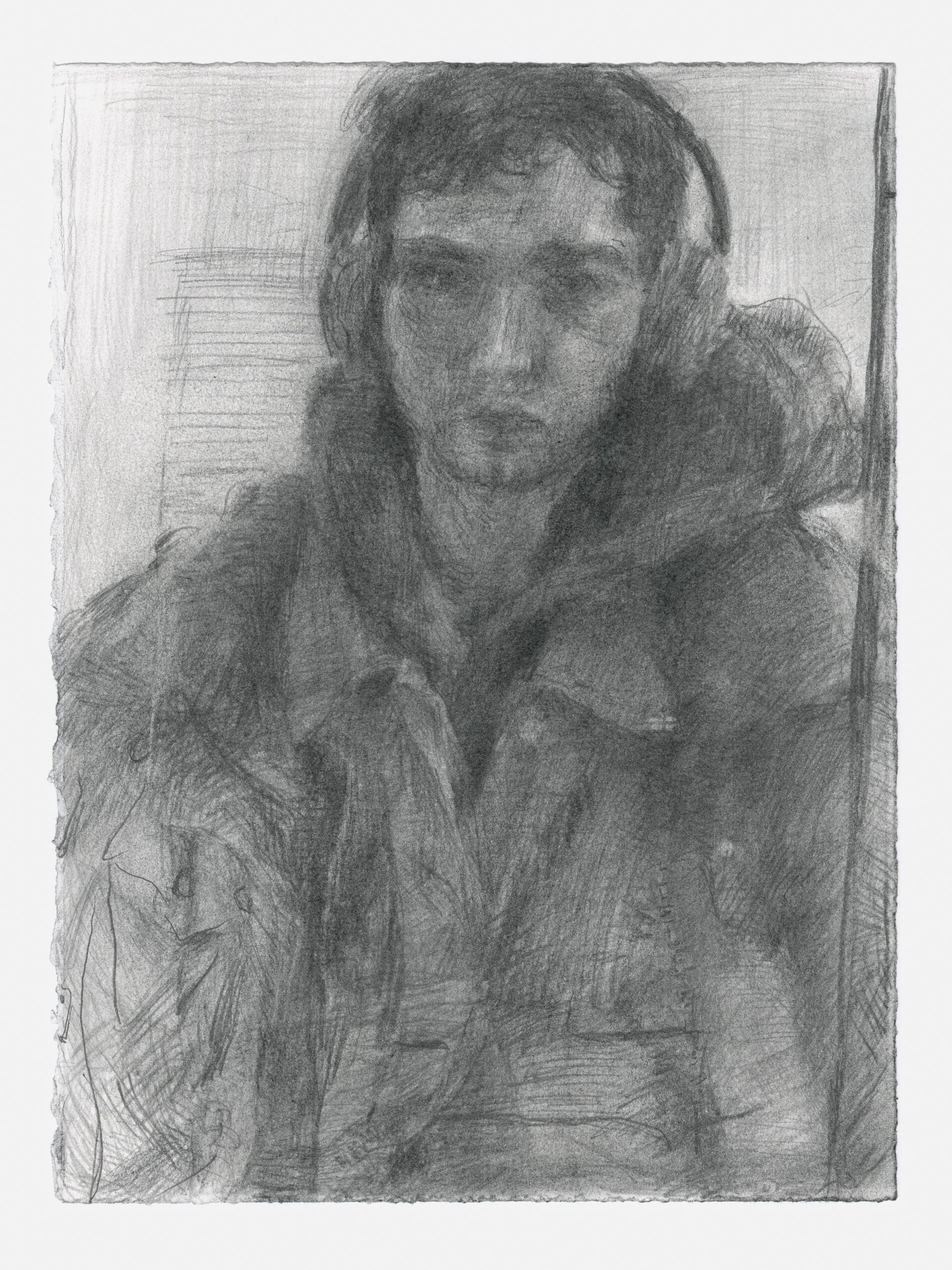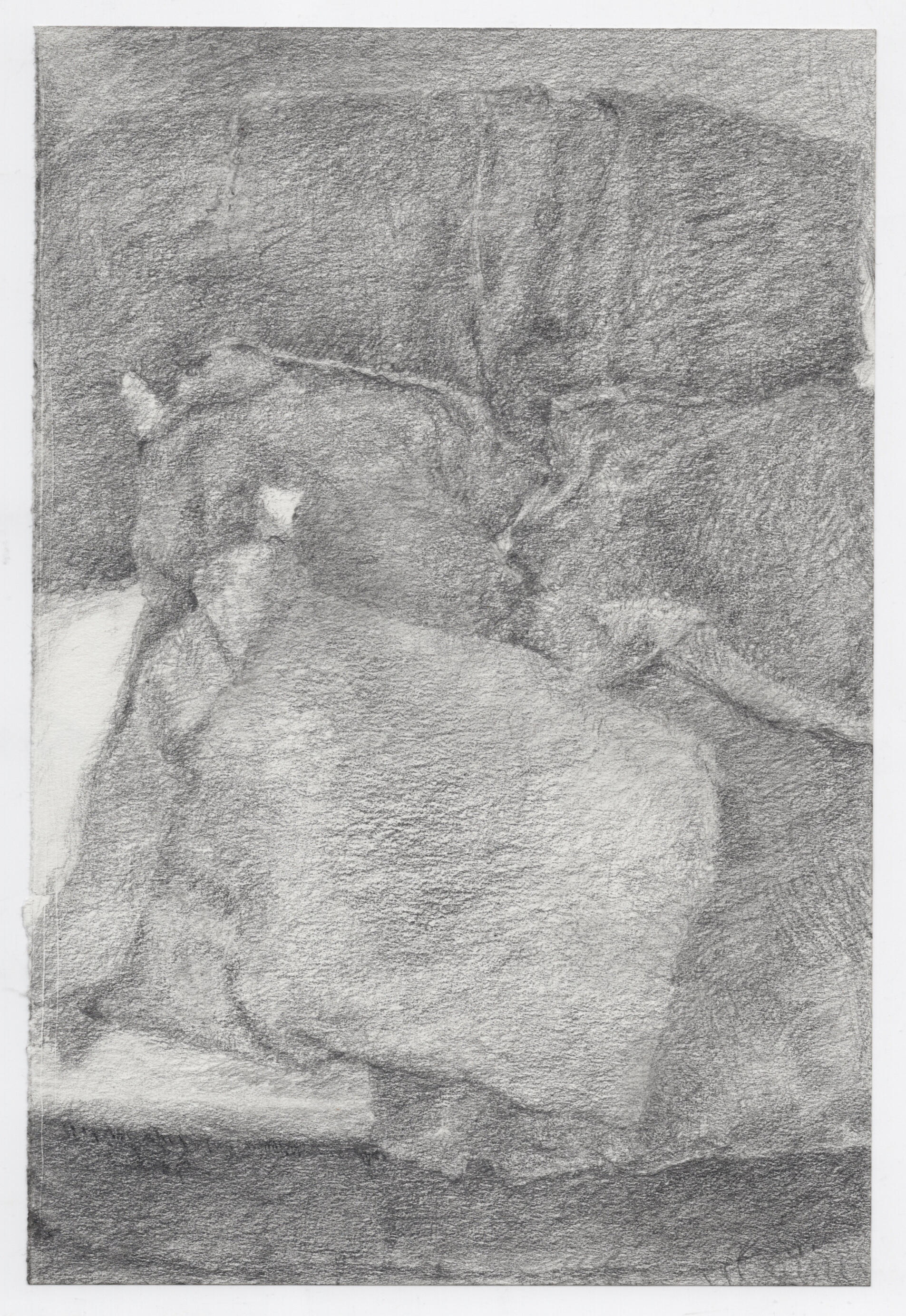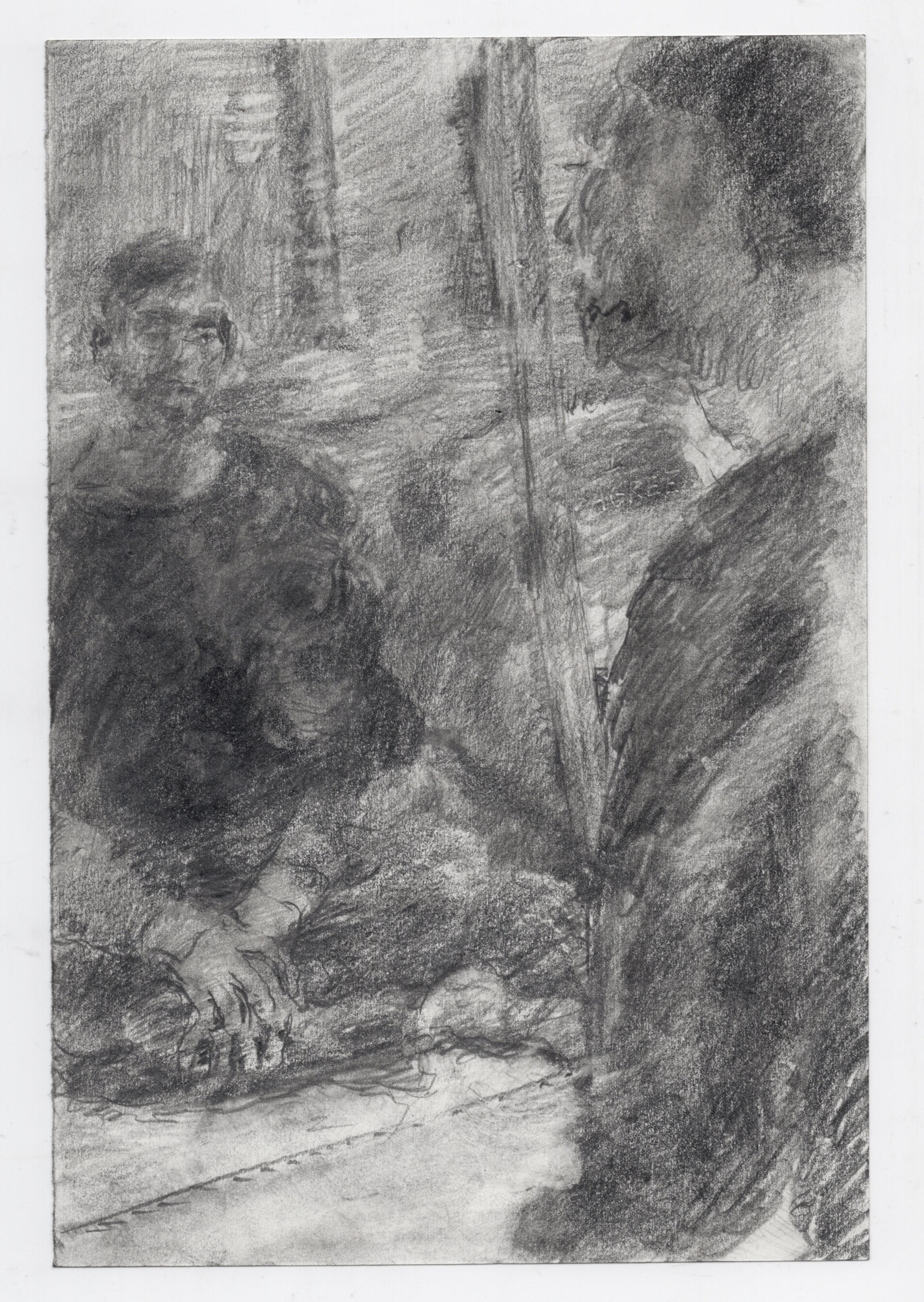 The graphite drawings stage blunt or common materials, performative masculinities, and incompatibilities within simulated life modules. Gesture behaves as interference within snapshots of infrastructure. Rural and urban social observations depict individuals who exist in roles they undermine, refuse, or feel estranged from—flattened to picture. Screen and iPhone captures from my life (drawn from Central Pennsylvania, Brooklyn, and Mecklenburg-Vorpommern, Germany) are alienated from source through translation, becoming vacant or degraded descriptors of possibilities, future symbols, or intimate moments, interacting with observed or traced tableaus. Rather than becoming upgrade or currency, the observation is rendered plain, split, anecdote, or fragment. Transitions are described by buses, or transit areas. Absences describe censored material or erased expressions. White columns repeat with defaced or mutating patterns, estranged from their viewers, describing collective misunderstandings and irreconcilabilities between art, markets, and lived experience. Grey describes morality and negates spectacle. Compartments hold compartments, like pockets within seats. Gates behave as blocks to experience. Cover-ups on fields act as stickers on impressions of historicized place. The banal becomes fruit for play. They are executed on a small and standardized scale (9” x 6” - 10” x 8”).
