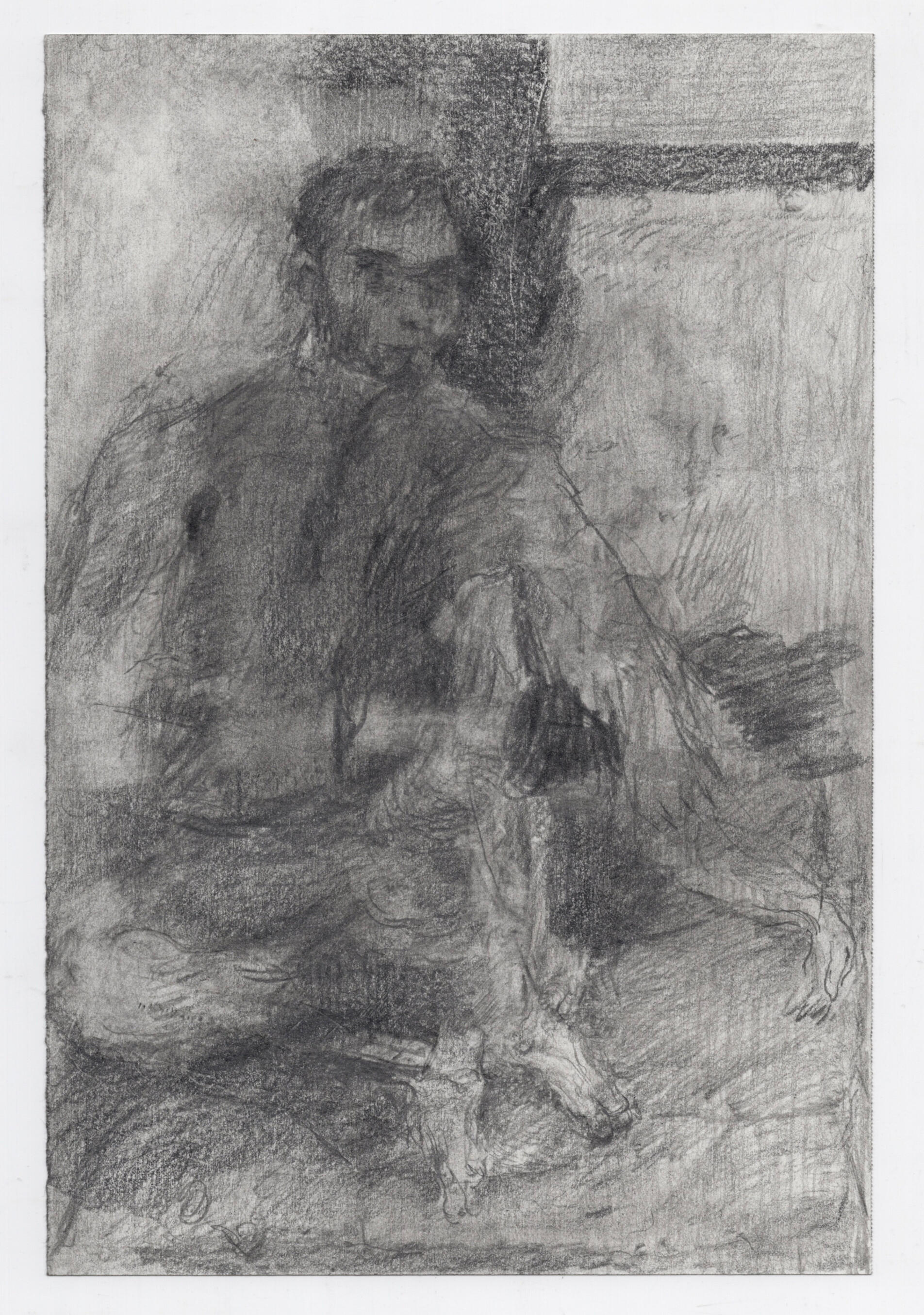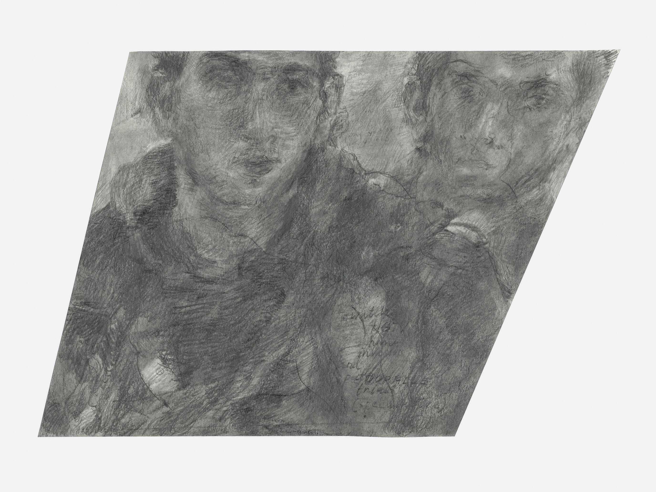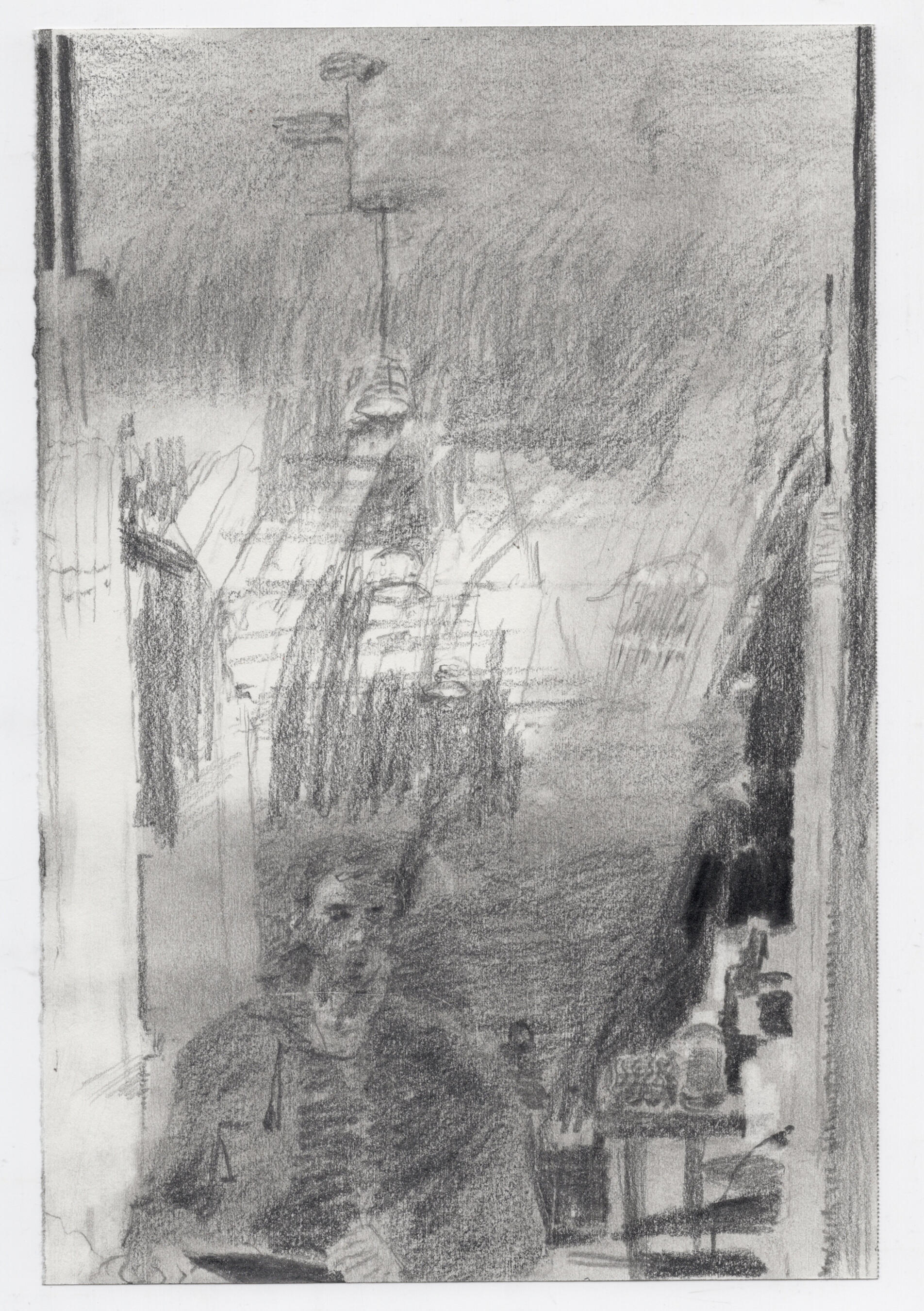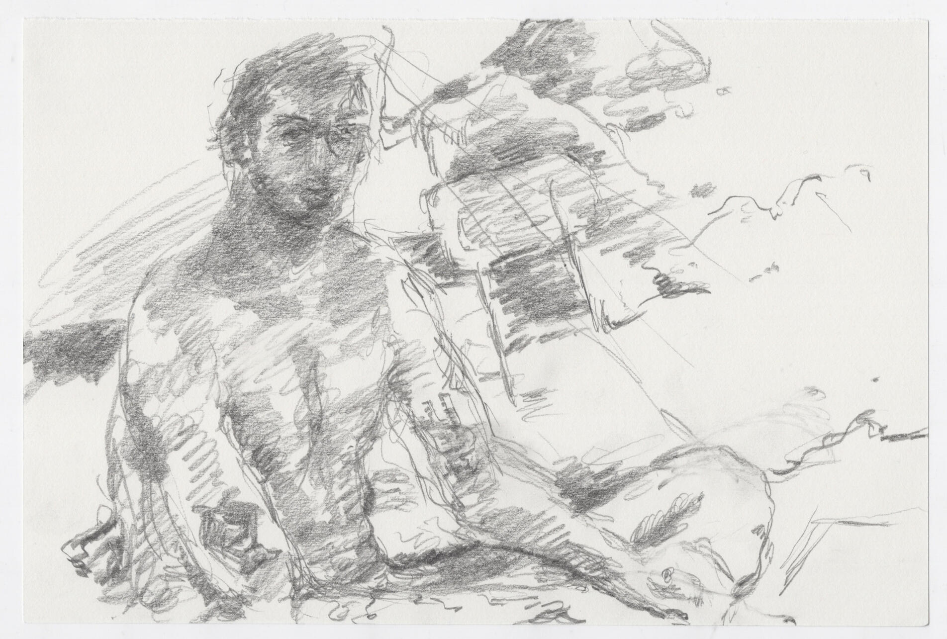 The graphite drawings stage blunt or common materials, performative masculinities, and incompatibilities within simulated life modules. Gesture behaves as interference within snapshots of infrastructure. Rural and urban social observations depict individuals who exist in roles they undermine, refuse, or feel estranged from—flattened to picture. Screen and iPhone captures from my life (drawn from Central Pennsylvania, Brooklyn, and Mecklenburg-Vorpommern, Germany) are alienated from source through translation, becoming vacant or degraded descriptors of possibilities, future symbols, or intimate moments, interacting with observed or traced tableaus. Rather than becoming upgrade or currency, the observation is rendered plain, split, anecdote, or fragment. Transitions are described by buses, or transit areas. Absences describe censored material or erased expressions. White columns repeat with defaced or mutating patterns, estranged from their viewers, describing collective misunderstandings and irreconcilabilities between art, markets, and lived experience. Grey describes morality and negates spectacle. Compartments hold compartments, like pockets within seats. Gates behave as blocks to experience. Cover-ups on fields act as stickers on impressions of historicized place. The banal becomes fruit for play. They are executed on a small and standardized scale (9” x 6” - 10” x 8”).