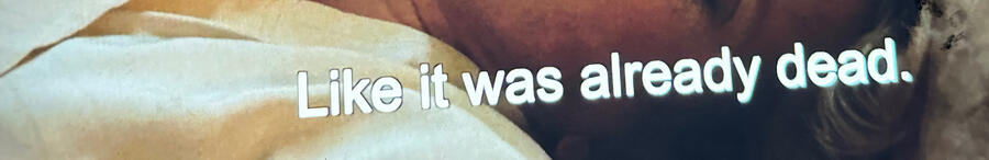 The word Clone is spray-painted in black and white block letters and dripping on the side of the building like a loose gash.L: It's all over the US. Hex's friends are trying to paint it in all the major cities to remember Hex with.D: Why Clone?L: It was Hex's tag, so they're trying to do it forward and make him live on.—L sobs on the stoop, while Bushwick drunks rubberneck.D: If he didn't want to get off fentanyl, he would have died regardless.L: He was going to move to New York in a couple weeks. He would have lived near you.D: He would have died here.—L sits swinging her legs with flip flops hanging off her toes at The Lounge.L: You make me feel like not a terrible person, because you’re friends with your shadow. Everyone else thinks I have a moral failing.D: For what?L: People think you're evil if you cheat, or drunk drive.D: Good Christian-types and good citizens are the worst.L: So-called ‘degenerate’ acts result from need, conditioning, or hardship, like the crimes in Bresson. The underclass are deemed immoral before they lash out too, or have to prove piety or capital value in order to be taken seriously or considered human. The real-real immoral are never caught, because they're the ones in control. My friends and I drunk drive and play bumper cars, smash into shit. Then sledge up rich people cars at night.D: Aren't you scared of getting in trouble? Or killing anyone?L: Where would I be if I wasn't in Seattle, doing crimes?D: Skincare specialist in Pennsylvania.L: I want to be a husk. She holds her arms out like a circle.D: What?L: I want to be a hot air balloon, leaking bills across a Trump landscape.D: Me too, I wanna be nothing.L: You can't.D: I can. I can dream.L: I'm a floater.D: Me too. Better than a nail in the ground. Nails all start off shiny, then rust, or get pulled up by the balloon tied to the nail. The wind carries the ballon, wherever.L: Fuck the wind.D: Be the wind.L: Be the train.D: Whatever.