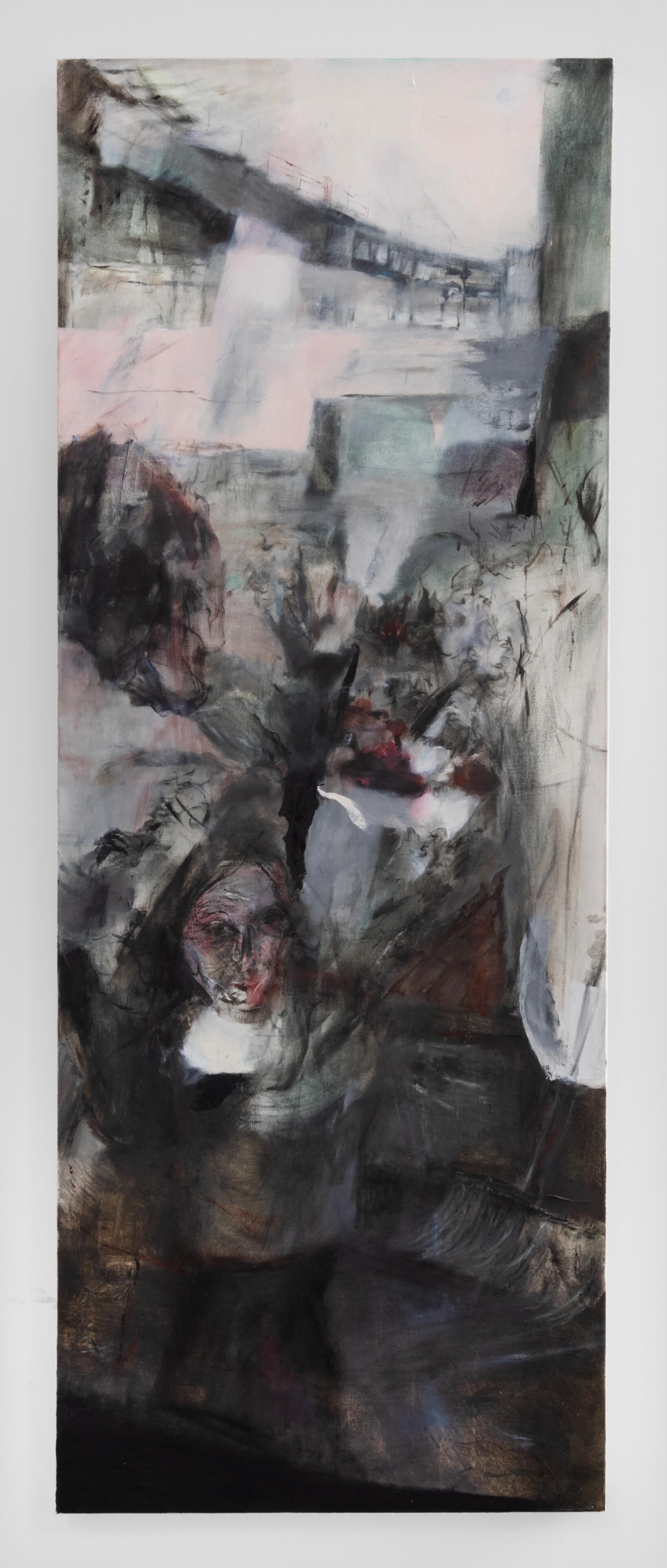 oil, acrylic, paper, and charcoal on canvas